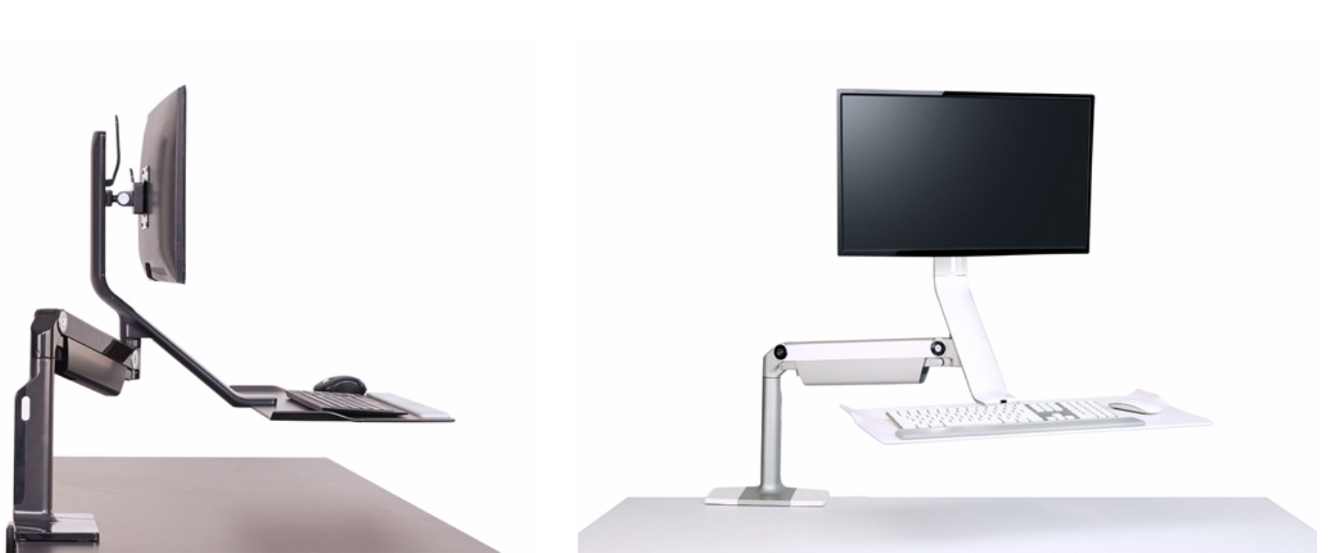 De elegante vorm van QuickStand Lite past in elk interieur en QuickStand Lite is gemakkelijk op bestaande werkplekken te monteren.